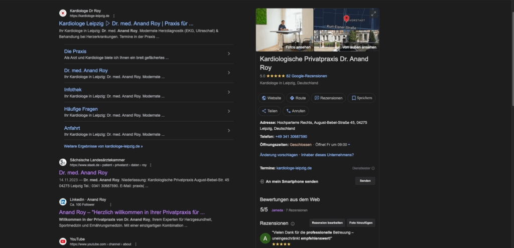 Eine moderne Website, lokale Optimierung (Google Maps) und gepflegte Bewertungen sind daher keine Option — sie entscheiden über Patientenanfragen.
